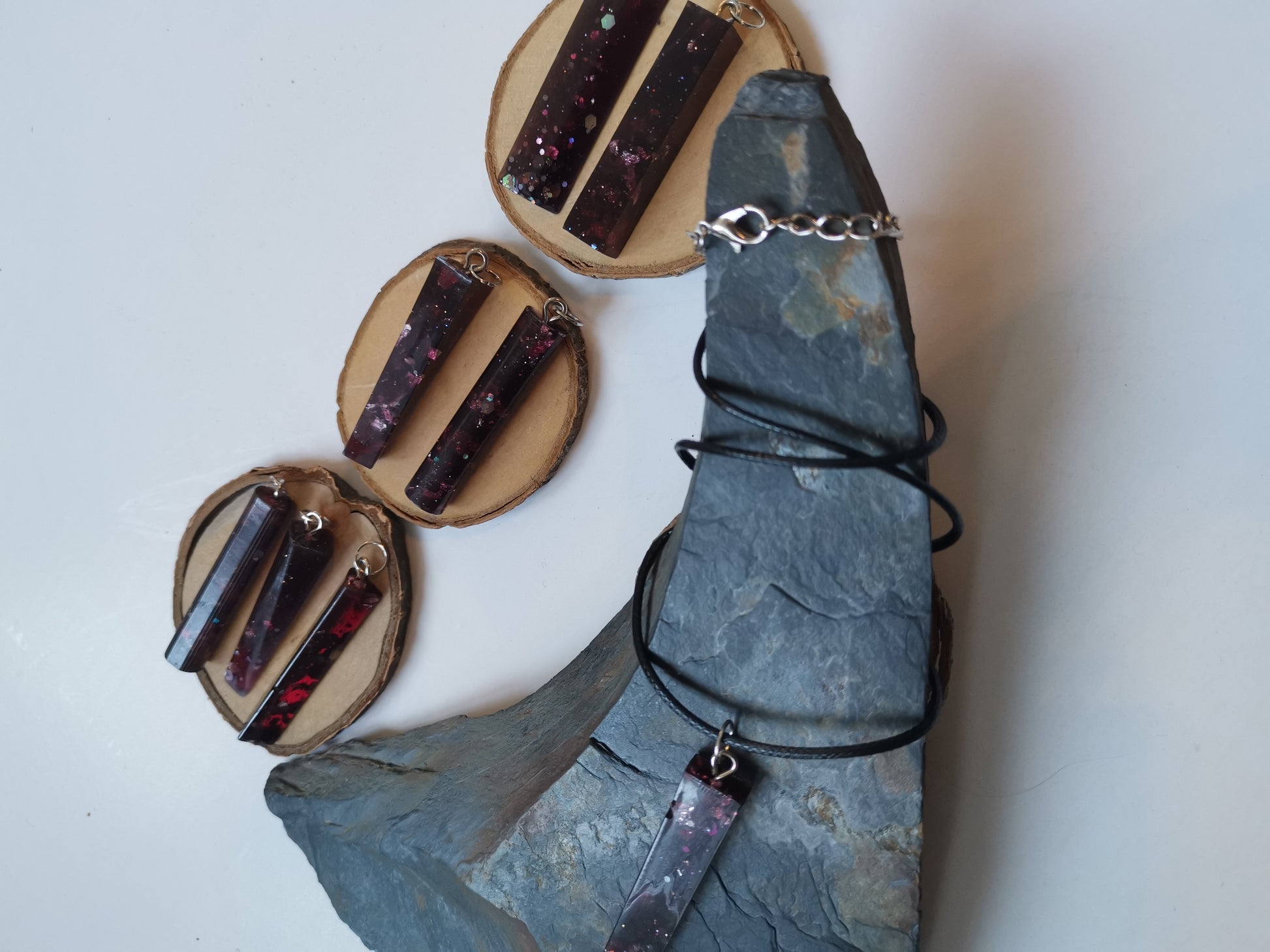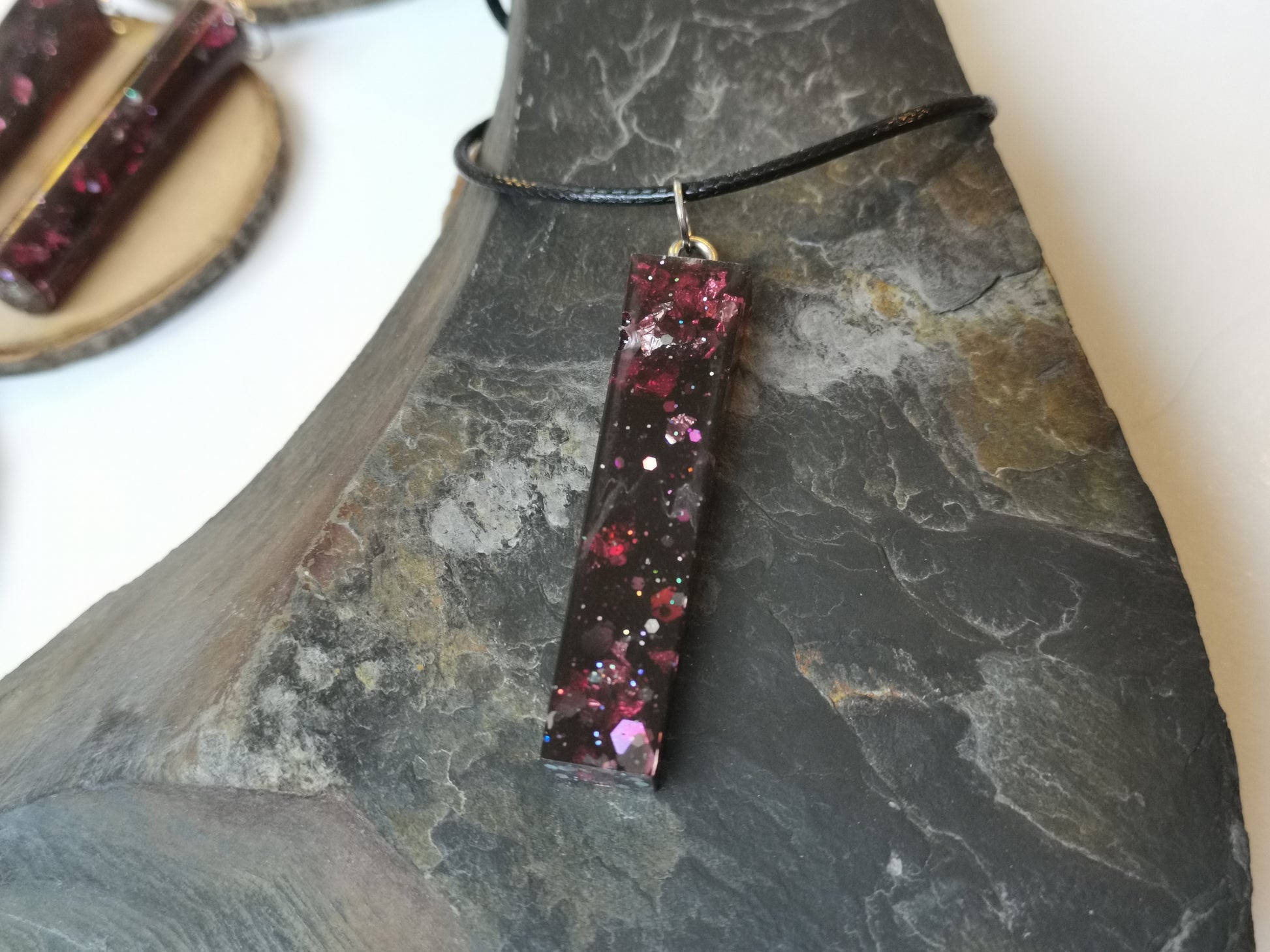 What do you think of a small accessory to enhance your appearance and add to your aesthetic? Here are mysterious pendants red like Vampire blood, just for you! These pendants are made of resin with silver leaf, glitter and magic!