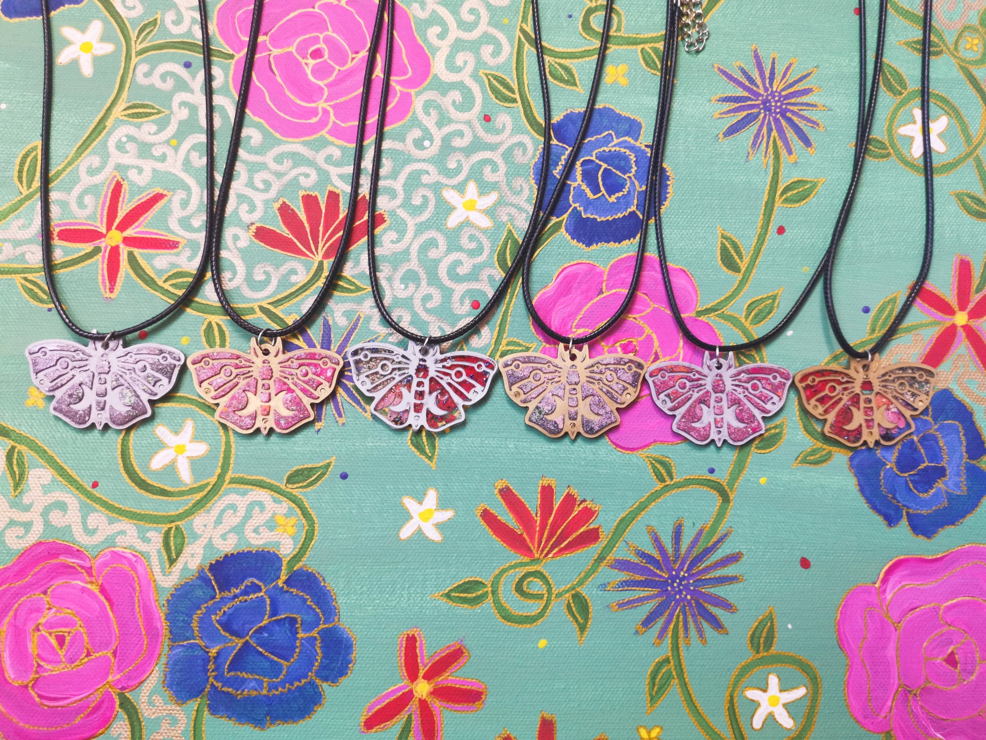 Transform your look with our beautiful handmade resin moth pendants. Their vibrant colors and floral details add a magical touch to any outfit. Treat yourself or give them as a gift for a unique and captivating look.
