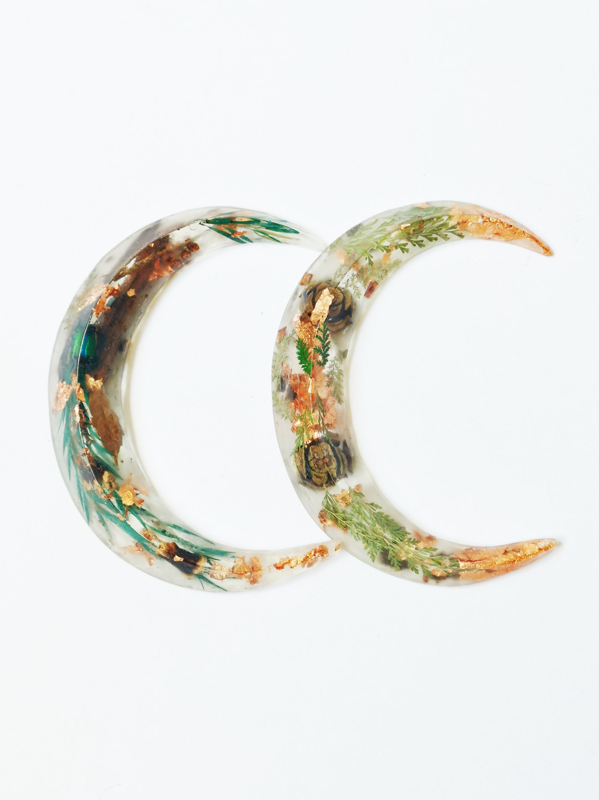 Apportez une touche magique à votre look avec une Lune ornementale. Fabriquée en résine et polie à la main, cette ornement de cheveux se décline en une version fleurie avec des fleurs séchées ou avec une couleur unie. Offrez-vous une touche luxueuse et intemporelle!