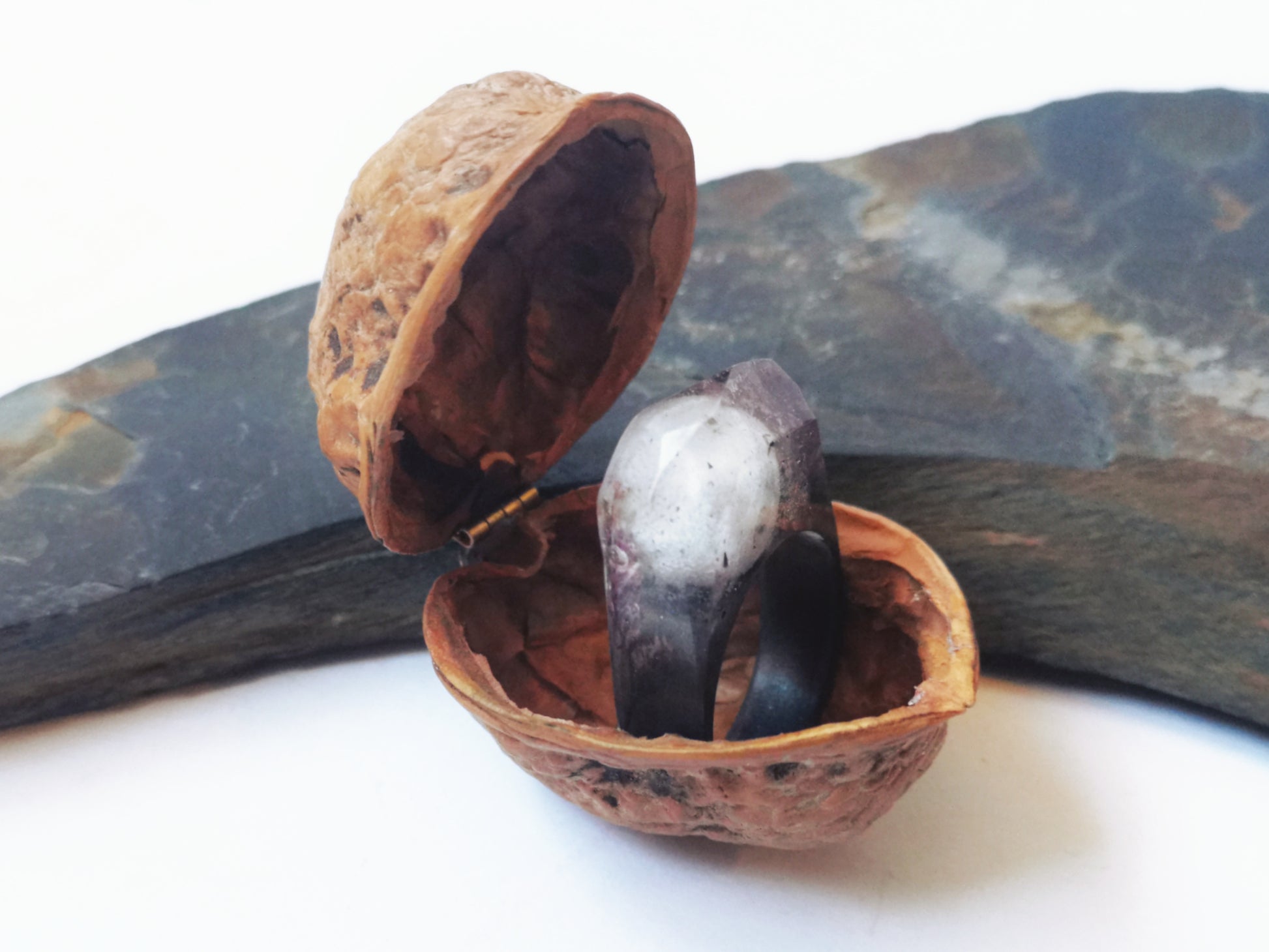Défiez les lois de la gravité avec la Bague Ithil ! Faite à la main, cette grosse bague de résine est remplie de plantes pourpres et d'une lune magique pour un look audacieux et unique. Devenez l'héroïne d'une aventure extraordinaire avec la Bague Ithil !