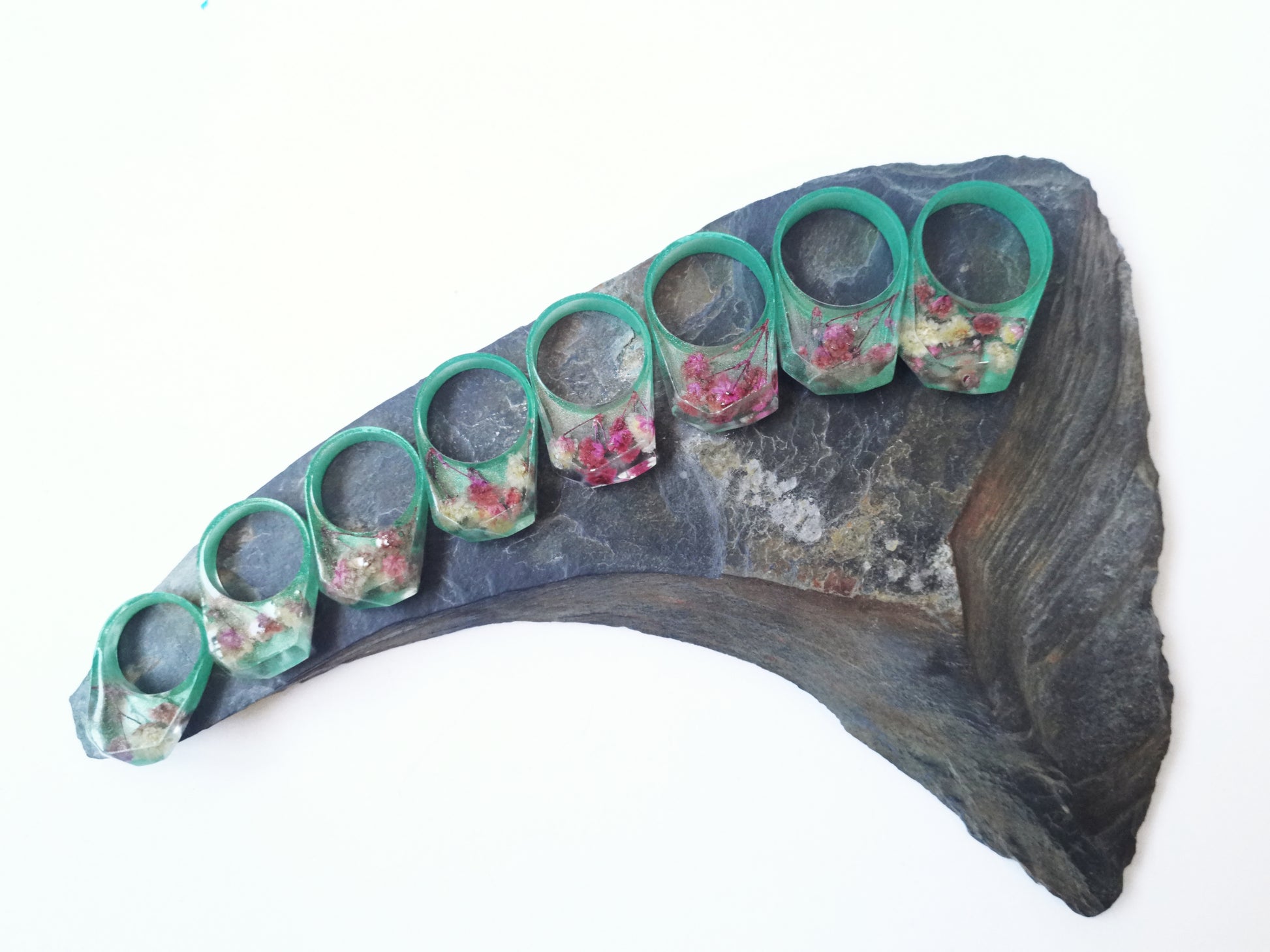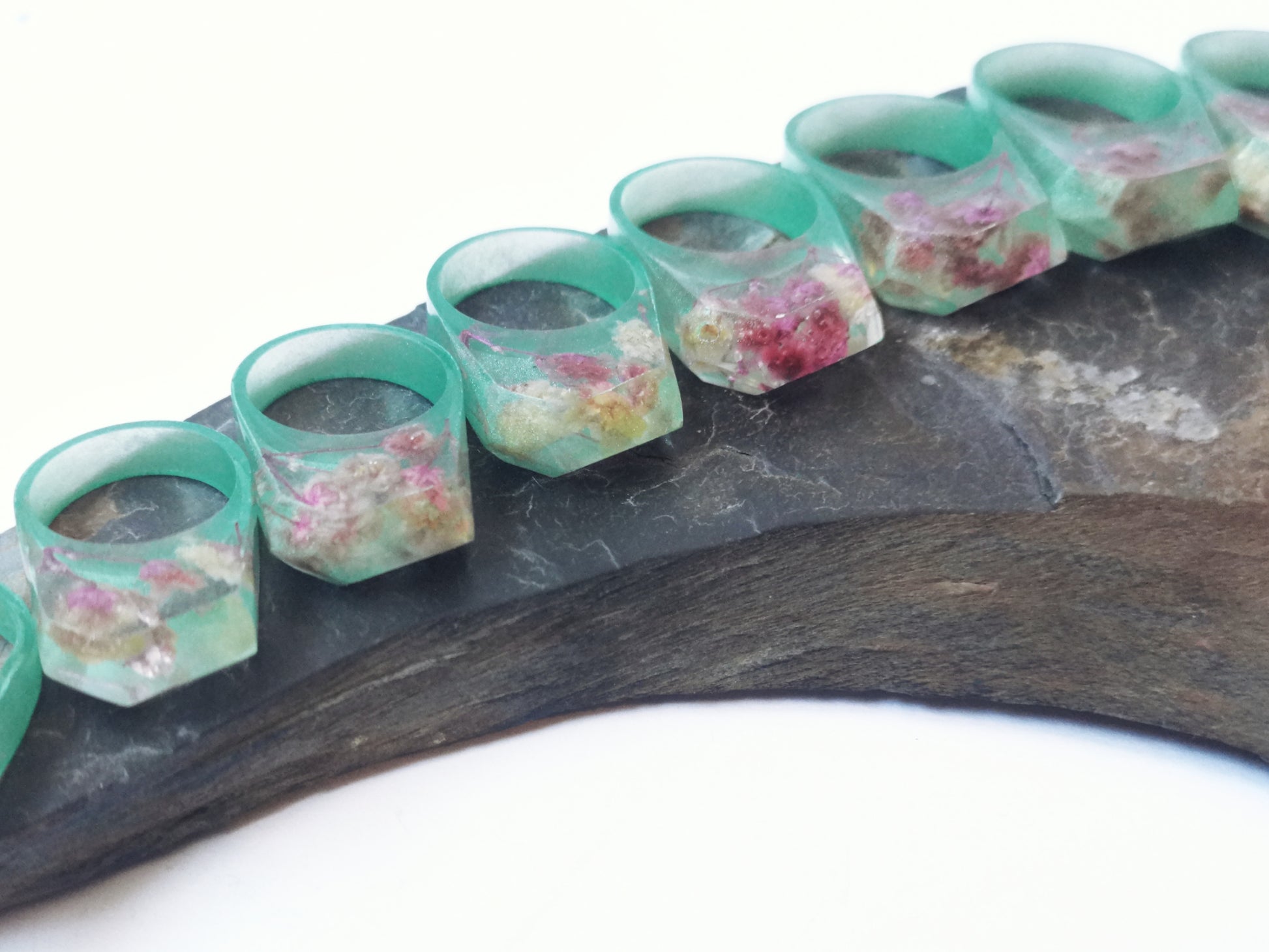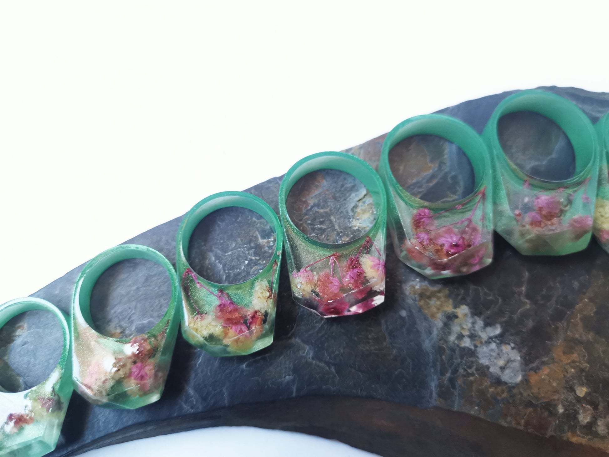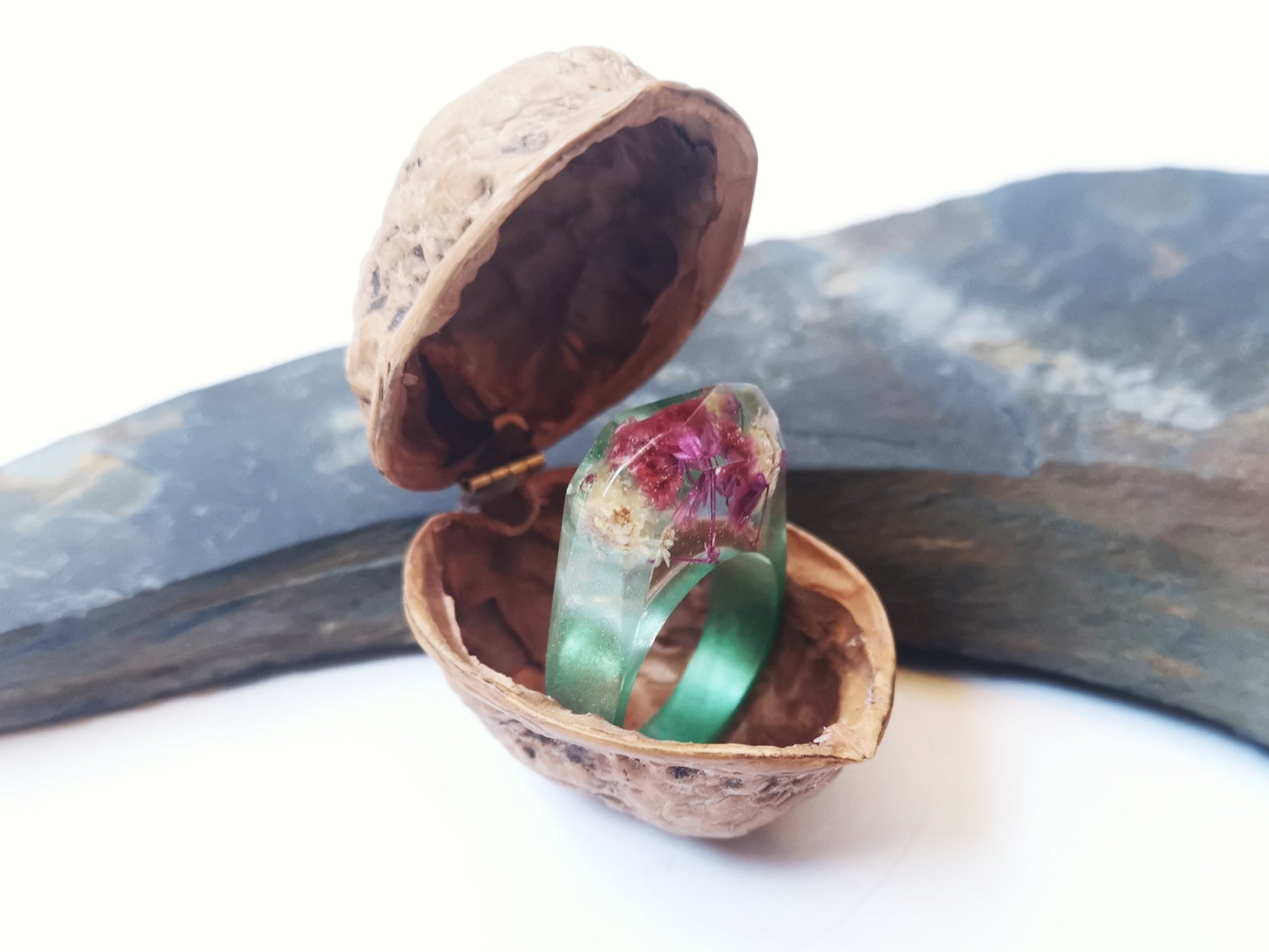 Une bague artisanale faite de résine et de fleurs séchées pour ajouter une touche magique à votre look. La Petite Fleur (grande) est un choix idéal pour les personnes qui recherchent le style et l'individualité.