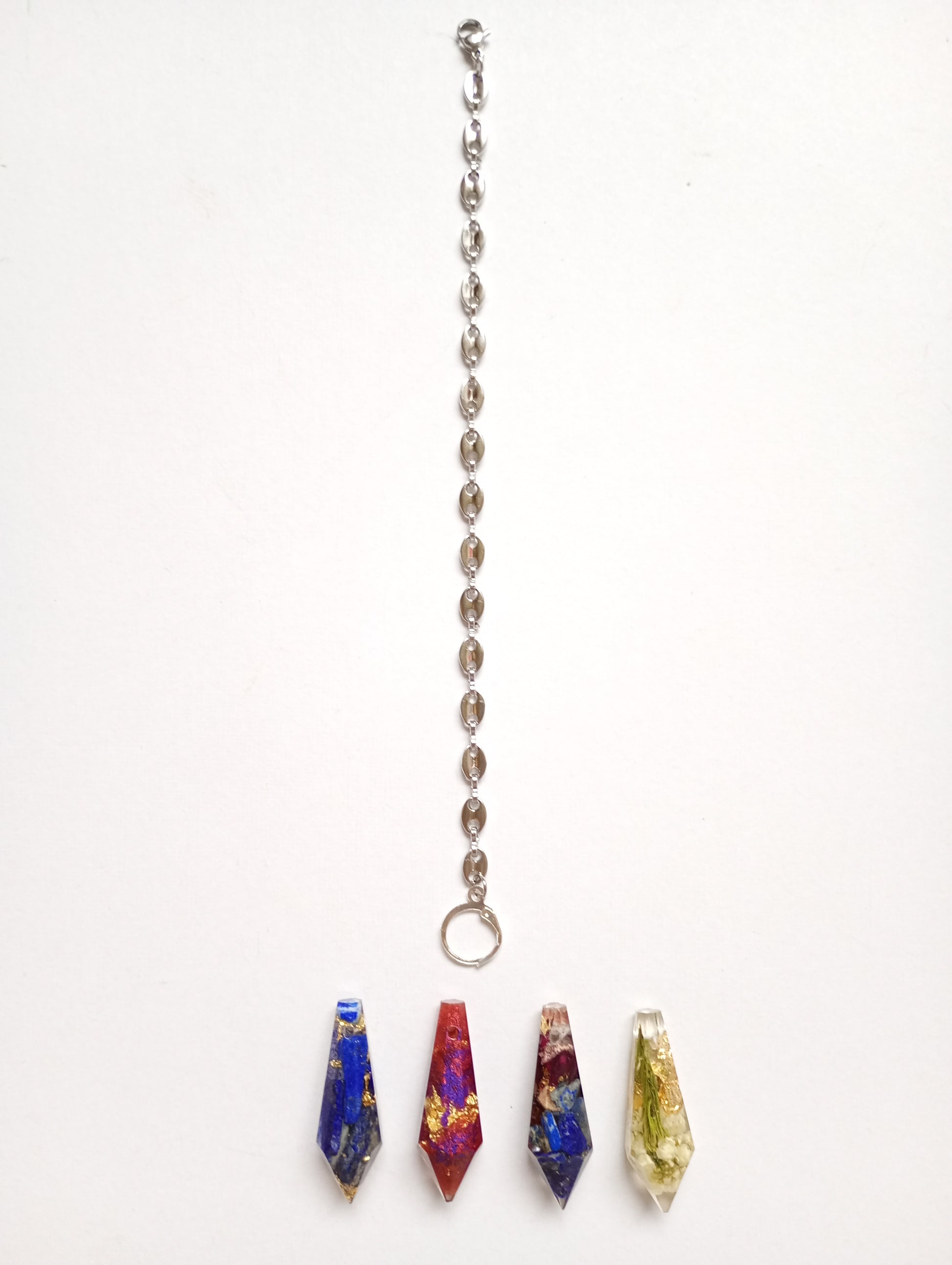 Fabriqué avec une chaîne en acier inoxydable 316L de 17,8 cm, chaque pendule-bracelet est conçu pour durer tout en étant délicatement élégant. Que vous souhaitiez explorer les arts divinatoires ou simplement porter un bijou qui vous connecte à la nature et à l'univers, nos pendules artisanaux sont l'accessoire idéal.