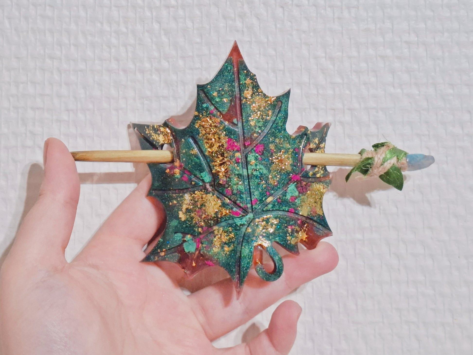Laissez-vous envoûter par Coif'feuilles, nos broches artisanales en résine, où la délicatesse de la nature prend forme. Chaque broche, inspirée des feuilles, est finement conçue à la main pour capturer la beauté organique du monde végétal. Le bâton en bois, orné d’une pierre semi-précieuse – opale, lapis-lazuli ou améthyste – ajoute une touche de magie et de sophistication. Sublimez vos coiffures avec ces créations uniques, où l'élégance et le mystère se rencontrent dans un éclat raffiné. Coif'feuilles, l’accessoire intemporel pour révéler toute la beauté de vos cheveux.