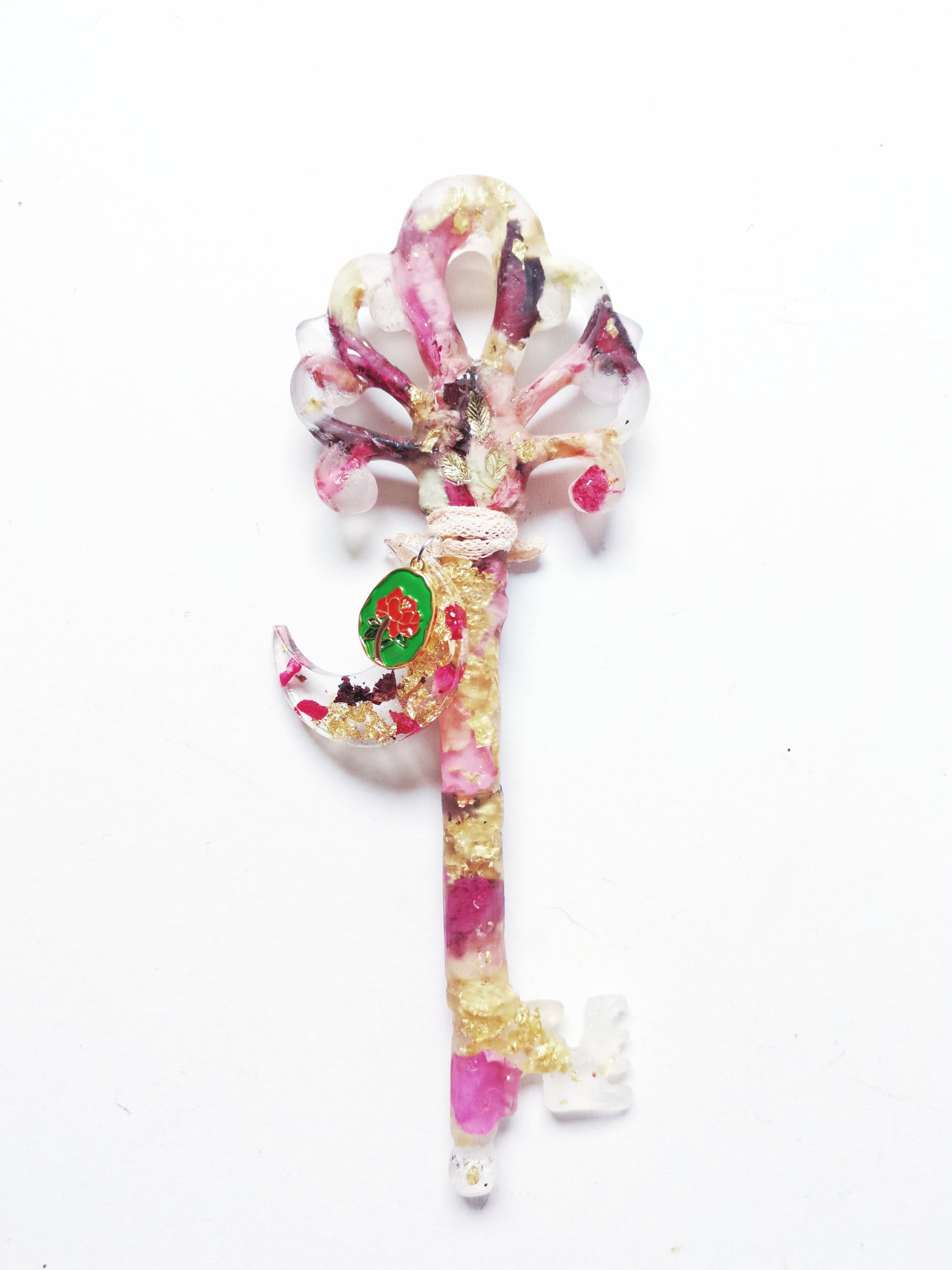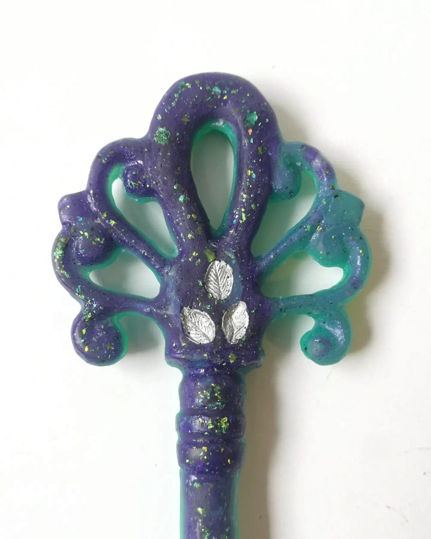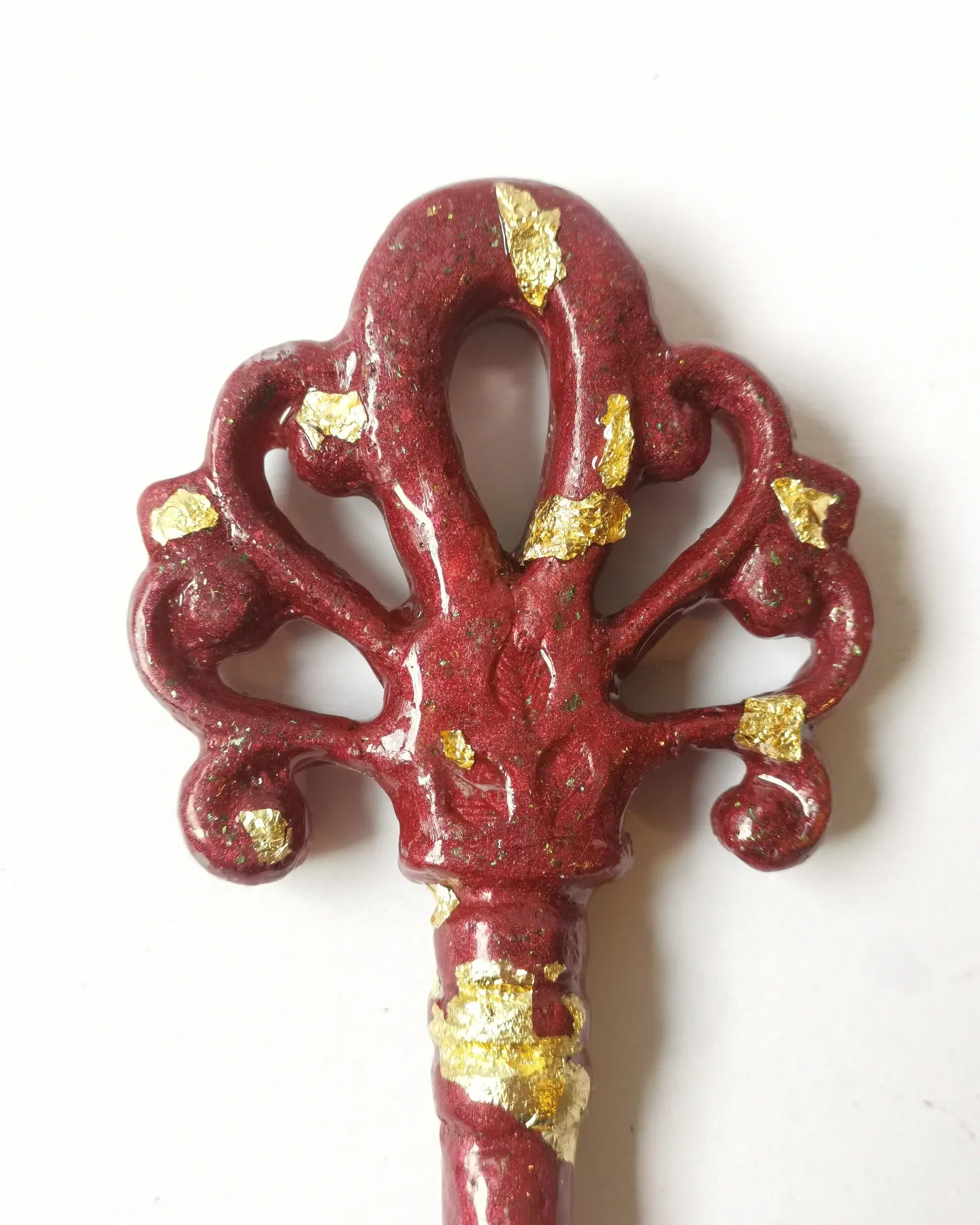 La Clé de l'univers est une pièce unique qui mesure 20 cm et est entièrement personnalisable avec différentes couleurs et matériaux tels que des fleurs, des feuilles d'or ou d'argent, etc. Parfaite pour les passionnés de clés, le cosplay, le jeu de rôle, la décoration, les cadeaux, etc. Ouvrez les portes de votre univers intérieur avec cette clé magique.