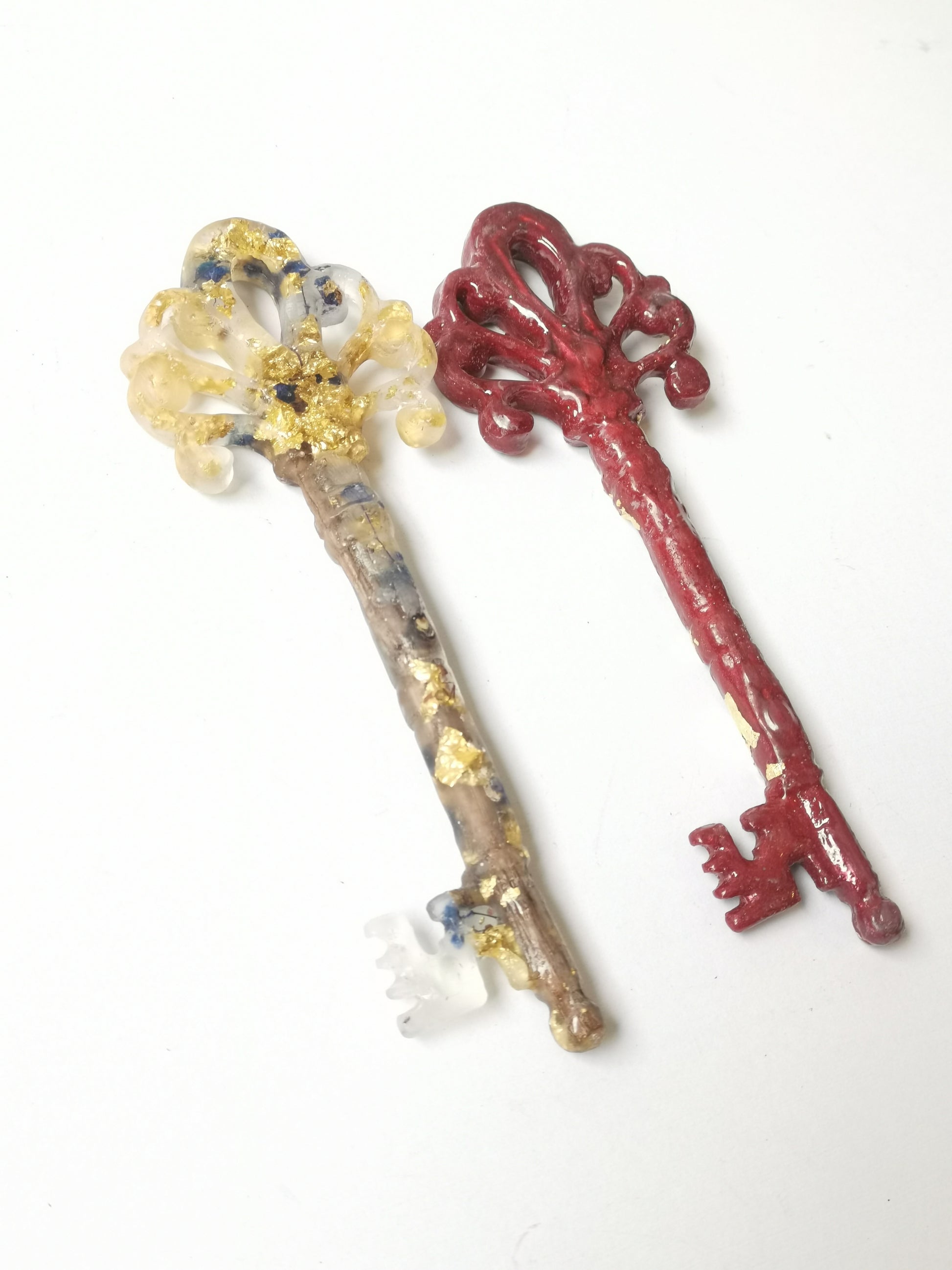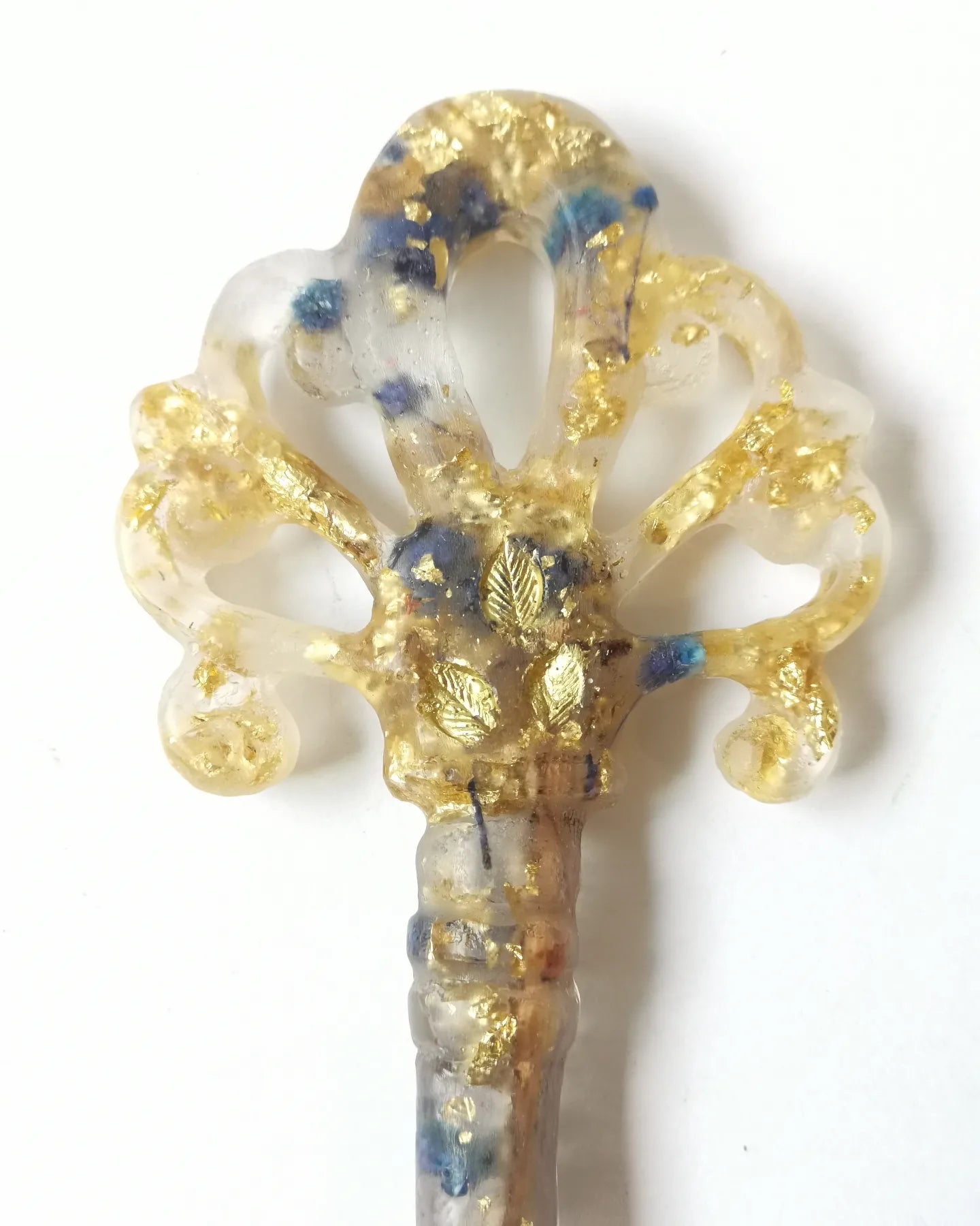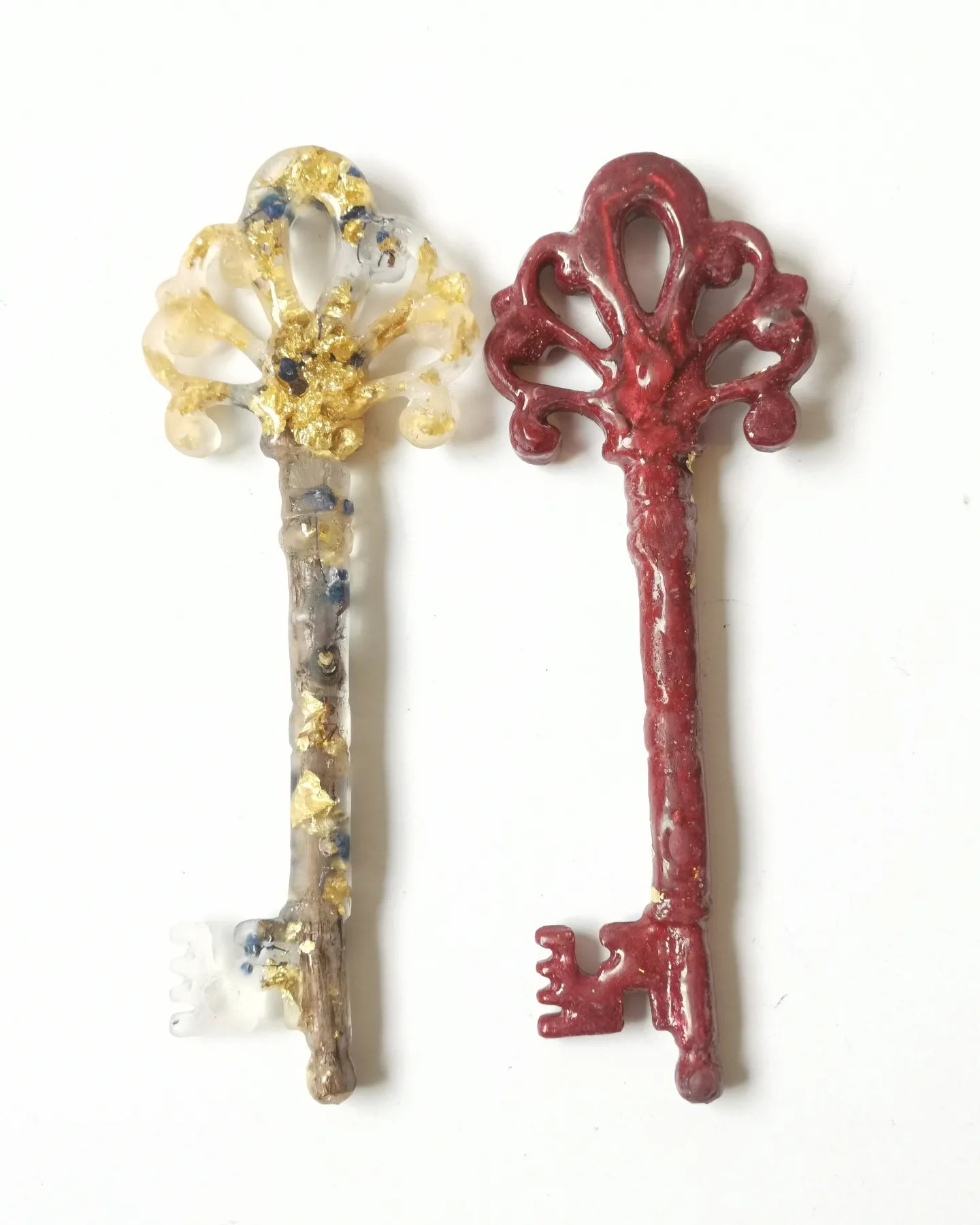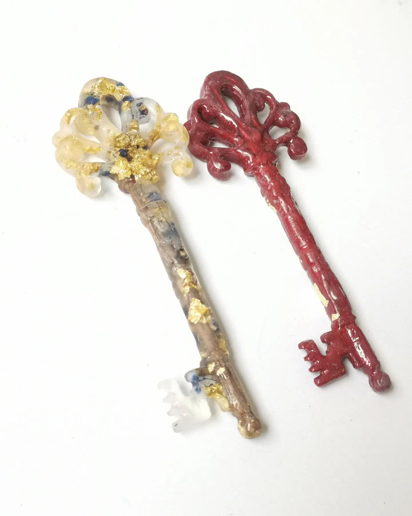 La Clé de l'univers est une pièce unique qui mesure 20 cm et est entièrement personnalisable avec différentes couleurs et matériaux tels que des fleurs, des feuilles d'or ou d'argent, etc. Parfaite pour les passionnés de clés, le cosplay, le jeu de rôle, la décoration, les cadeaux, etc. Ouvrez les portes de votre univers intérieur avec cette clé magique.