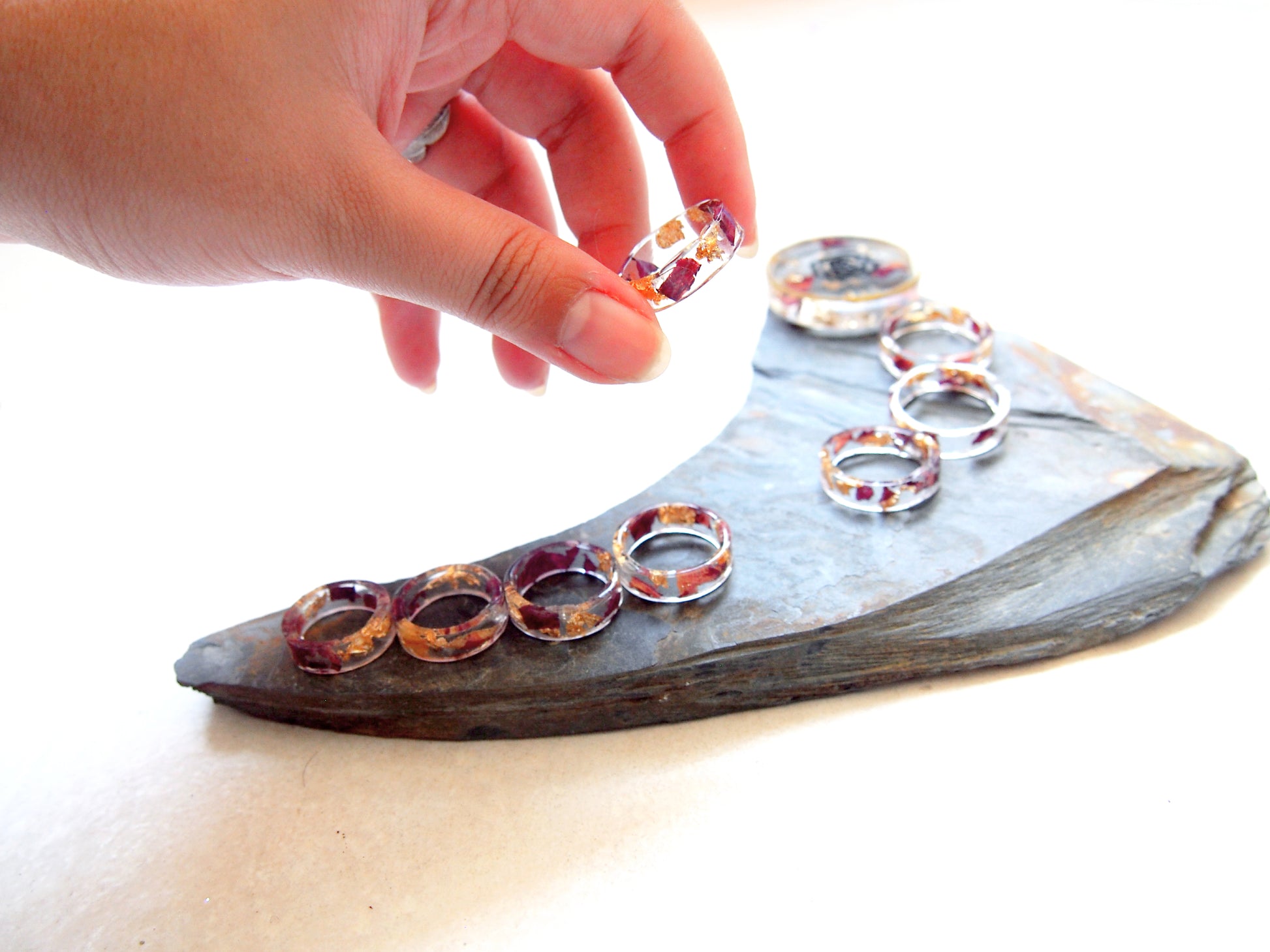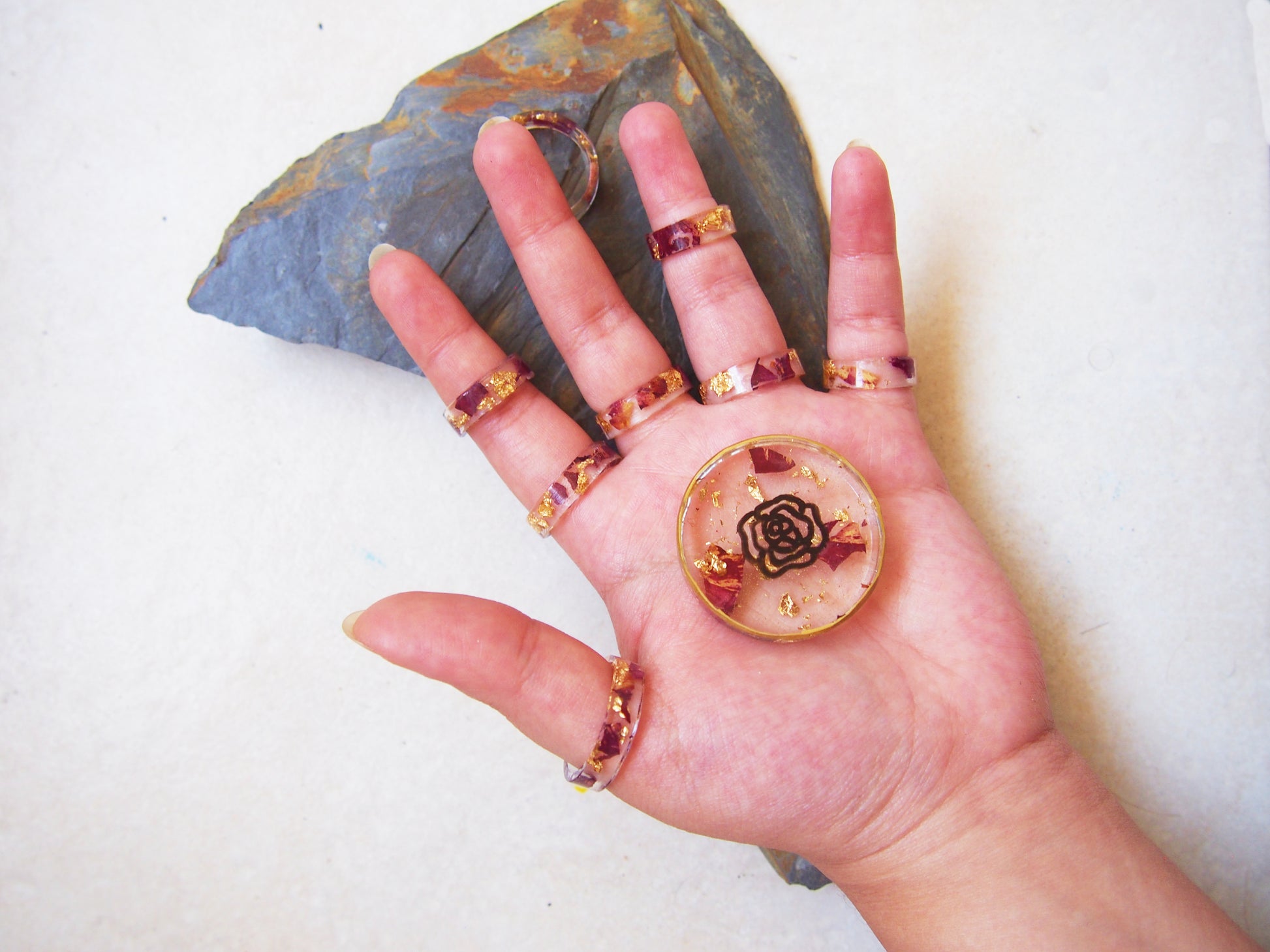 Inspirées de la collection de clés Envie de Roses, ces bagues sont disponibles en 8 tailles différentes ! Ils sont soigneusement fabriqués à la main! Ils sont fabriqués à partir de résine, de pétales de rose rouges séchés naturels et de feuilles d'or. Ces bagues sont parfaites pour votre esthétique florale, gothique ou toute autre esthétique, après tout, les roses et l'or vont avec tout !