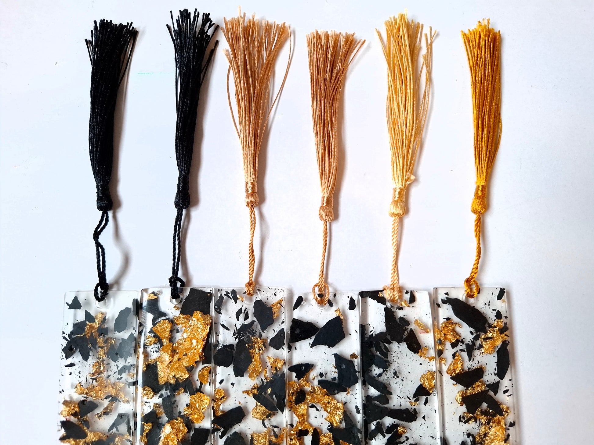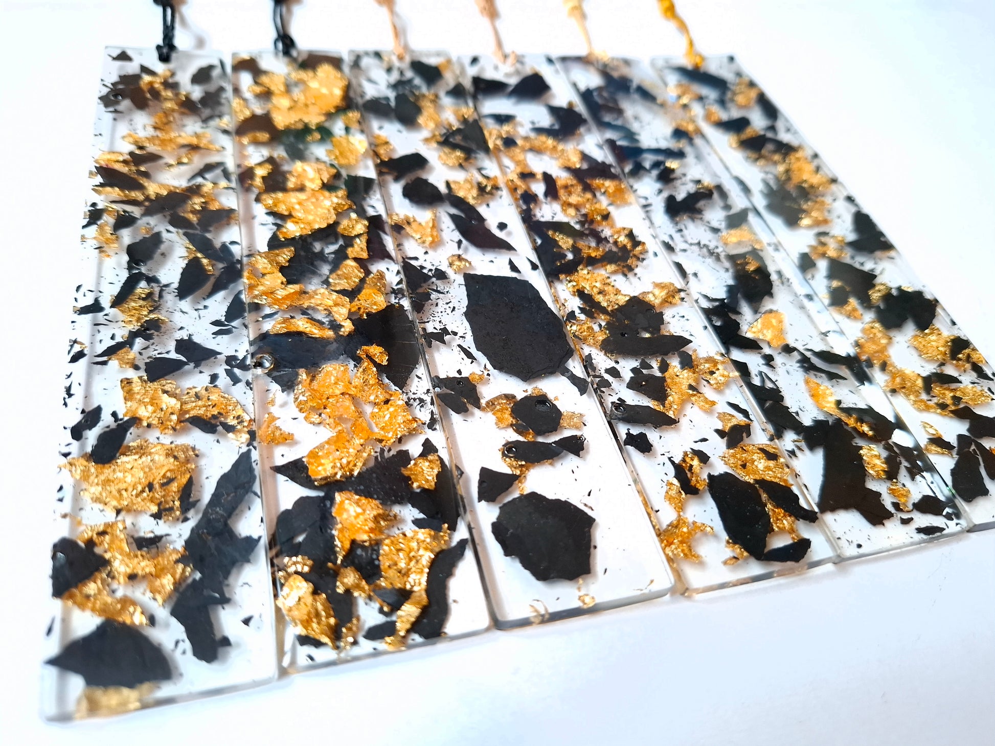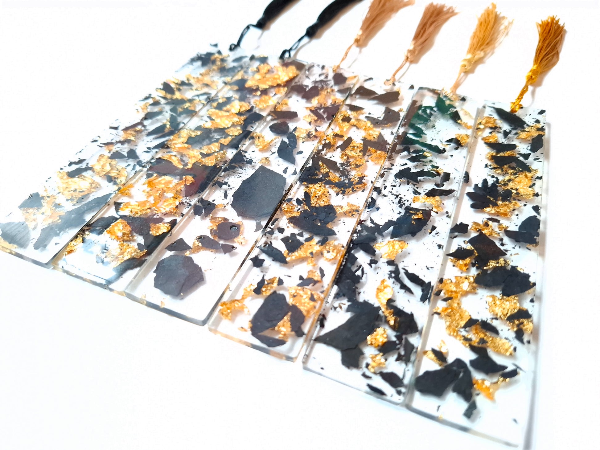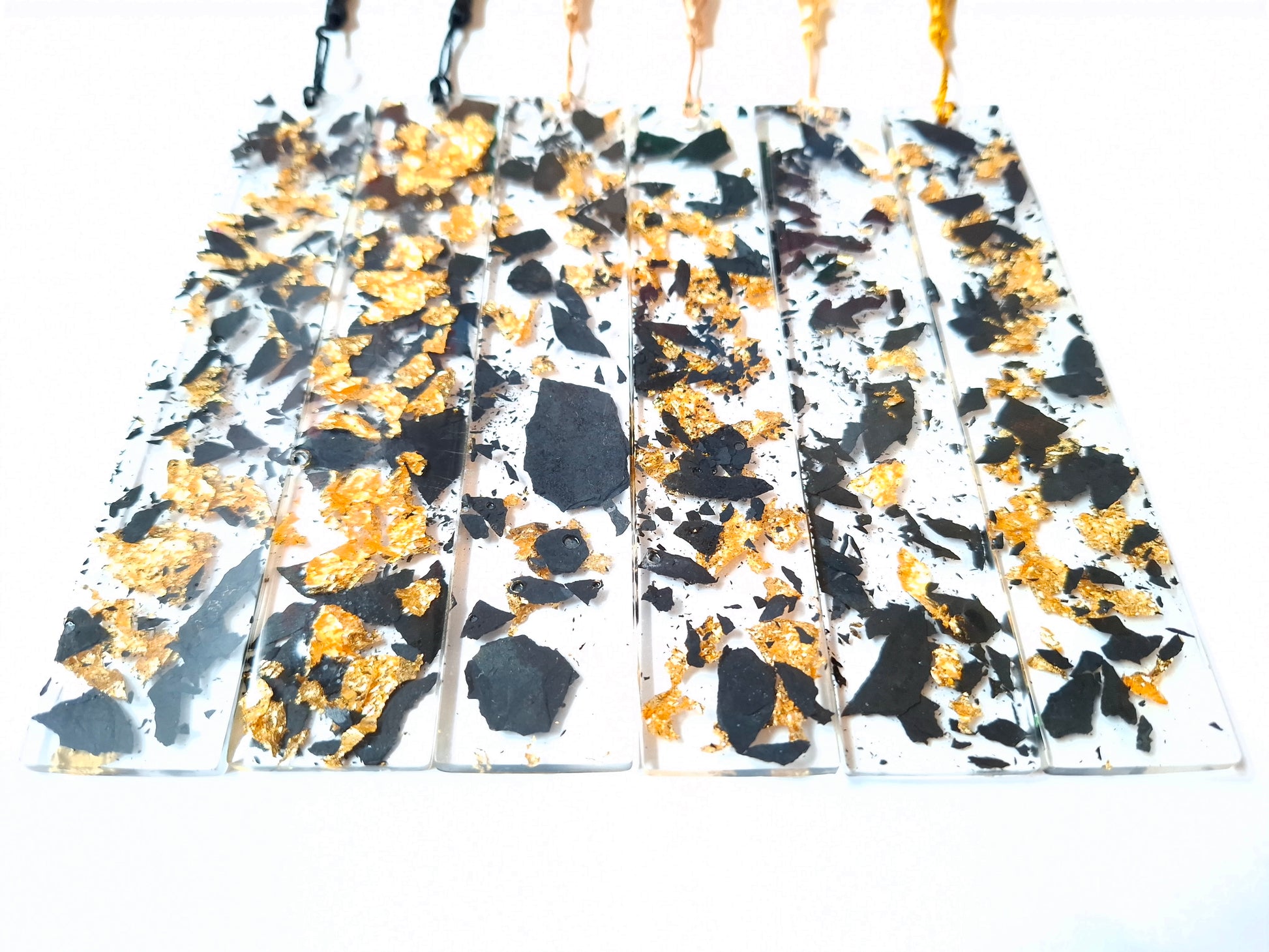 Entre vos pages, glisse un éclat de mystère… Ces marque-pages en résine renferment de véritables fragments d’ardoise subtilement mêlés à de délicates feuilles d’or, capturant la lumière et l’imagination à chaque regard.