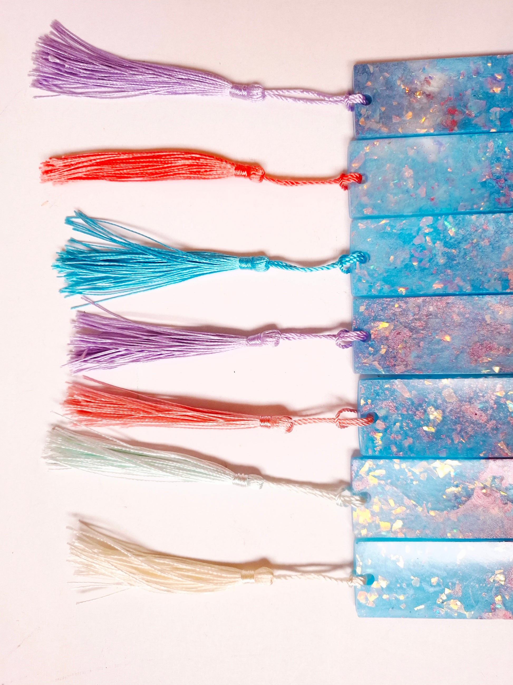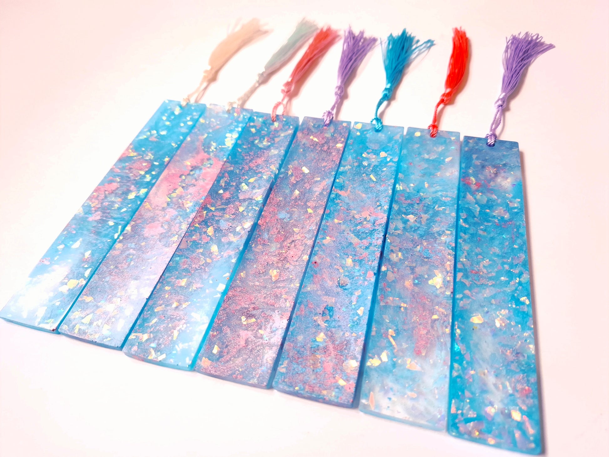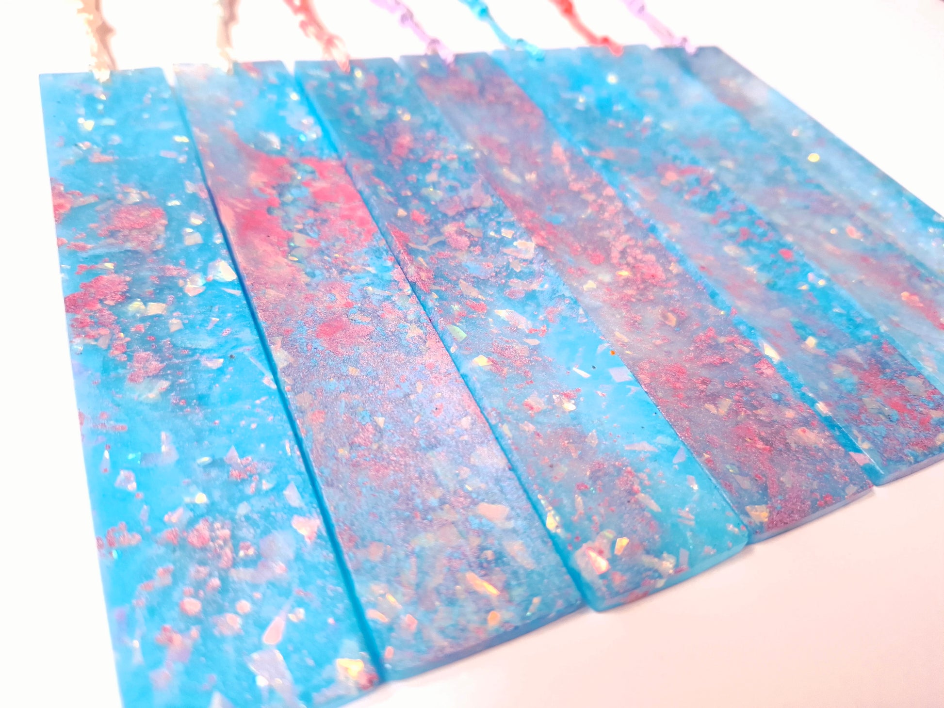 Chaque pièce est unique : les nuances, les reflets et l’éclat des flocons irisés varient légèrement, rendant chaque marque-page singulier, à la fois poétique et magique.